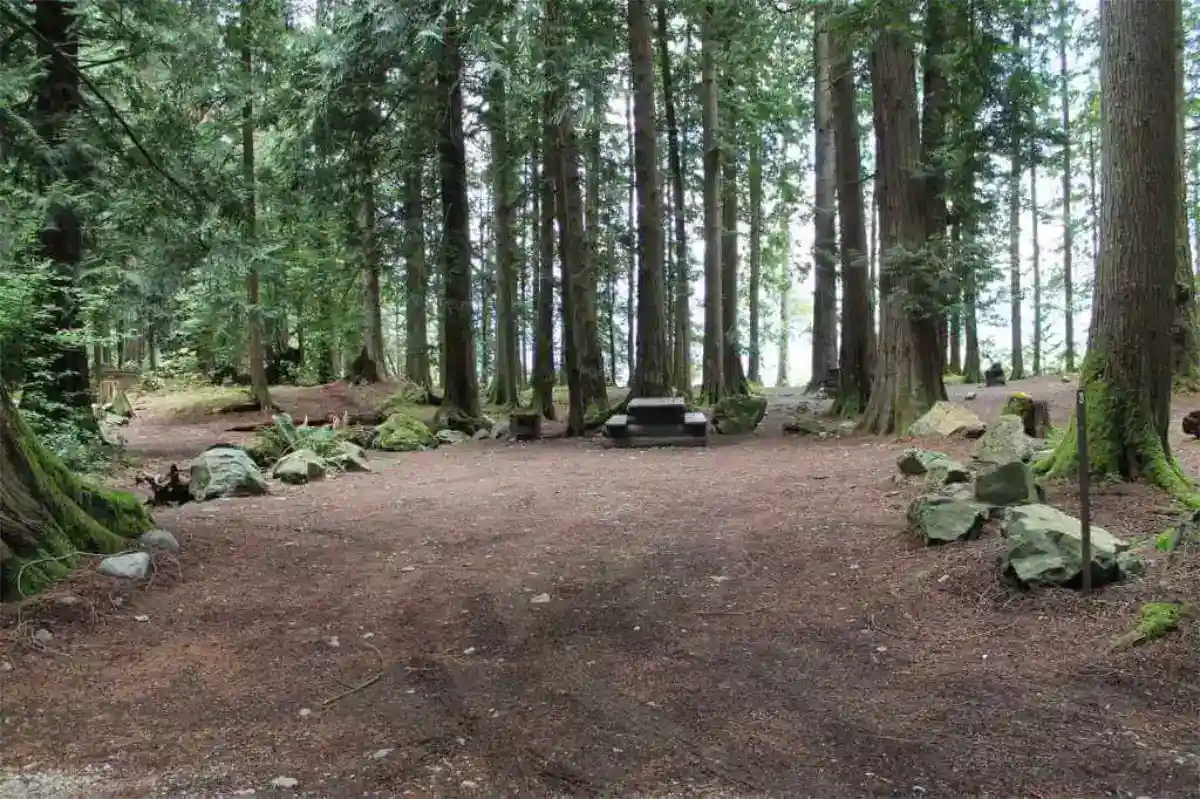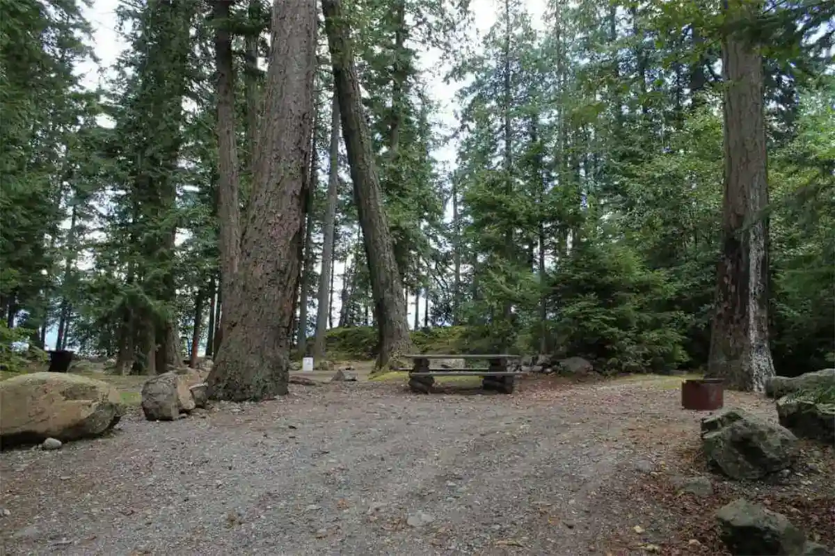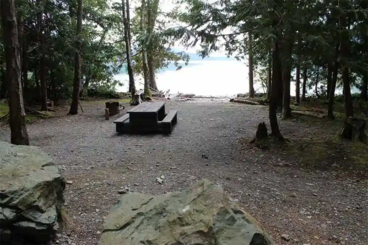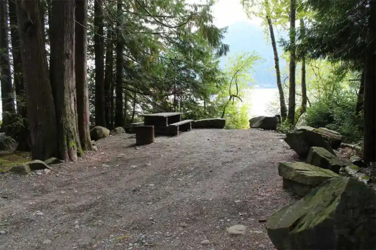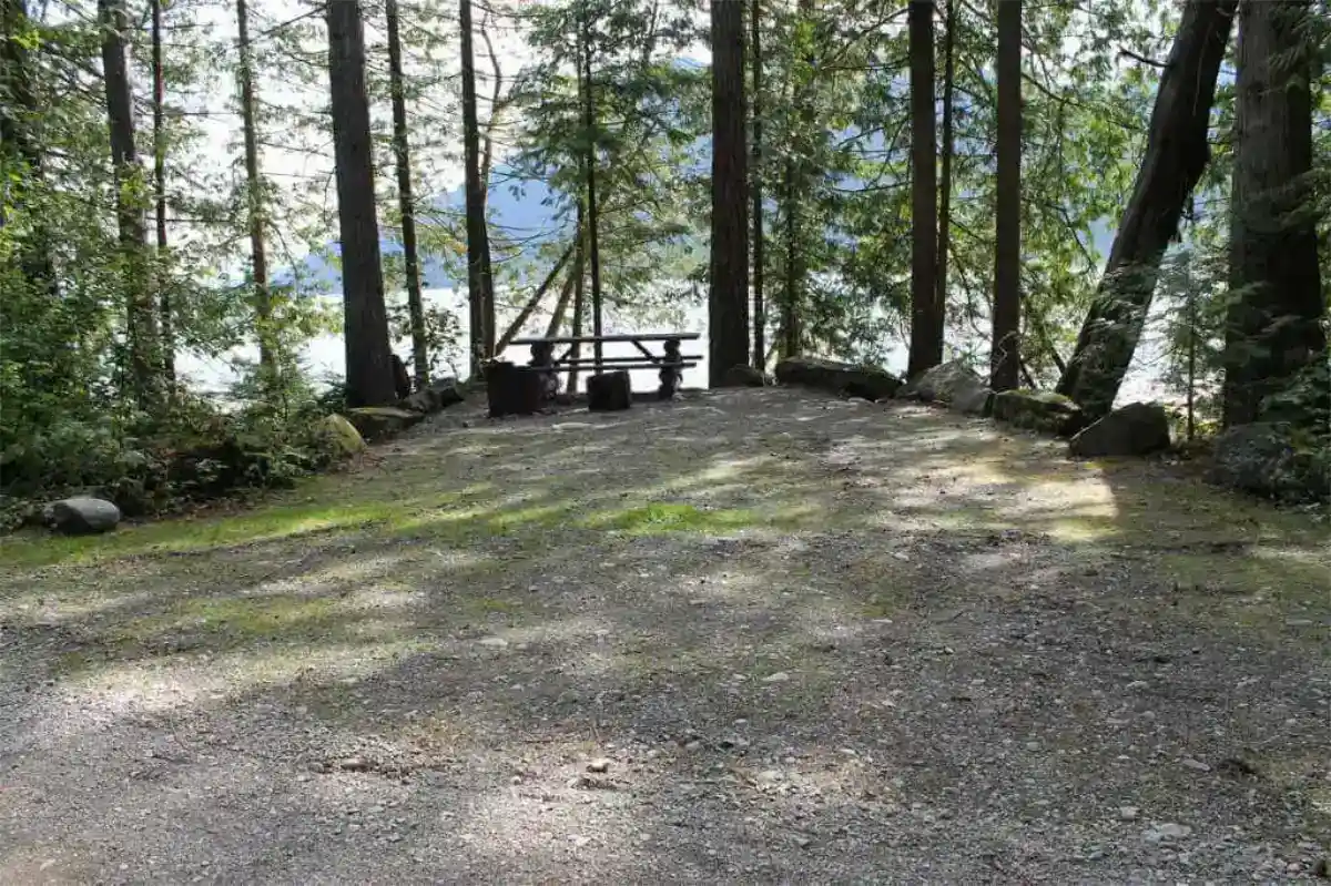 The sites are nestled in an old growth forest and are situated on a peninsula with over 1.5 km’s of beach facing North and South on the West shore of Harrison Lake. Over half of these campsites are located on the waterfront with direct access to the beach.