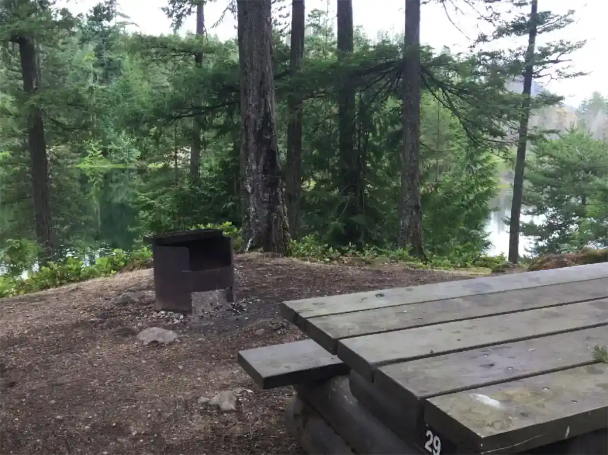 This 31 campsite semi-open campground has two camping areas, one on each side of the lake.