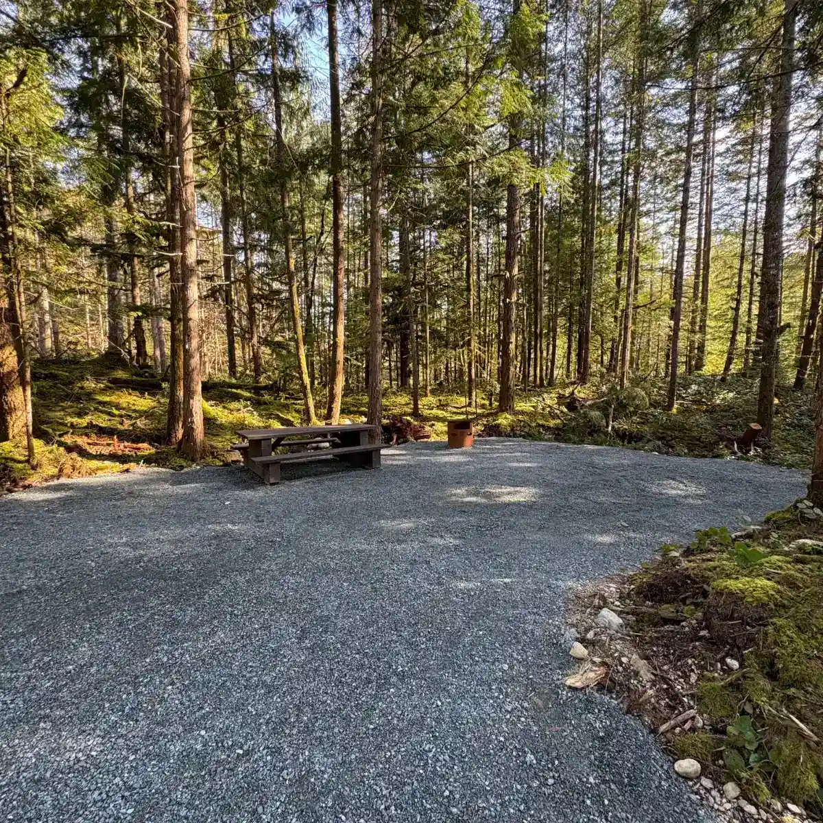To access this campground, you will need to travel along a gravel/dirt Forest Service logging road that may be rough and have potholes. Please drive carefully.
