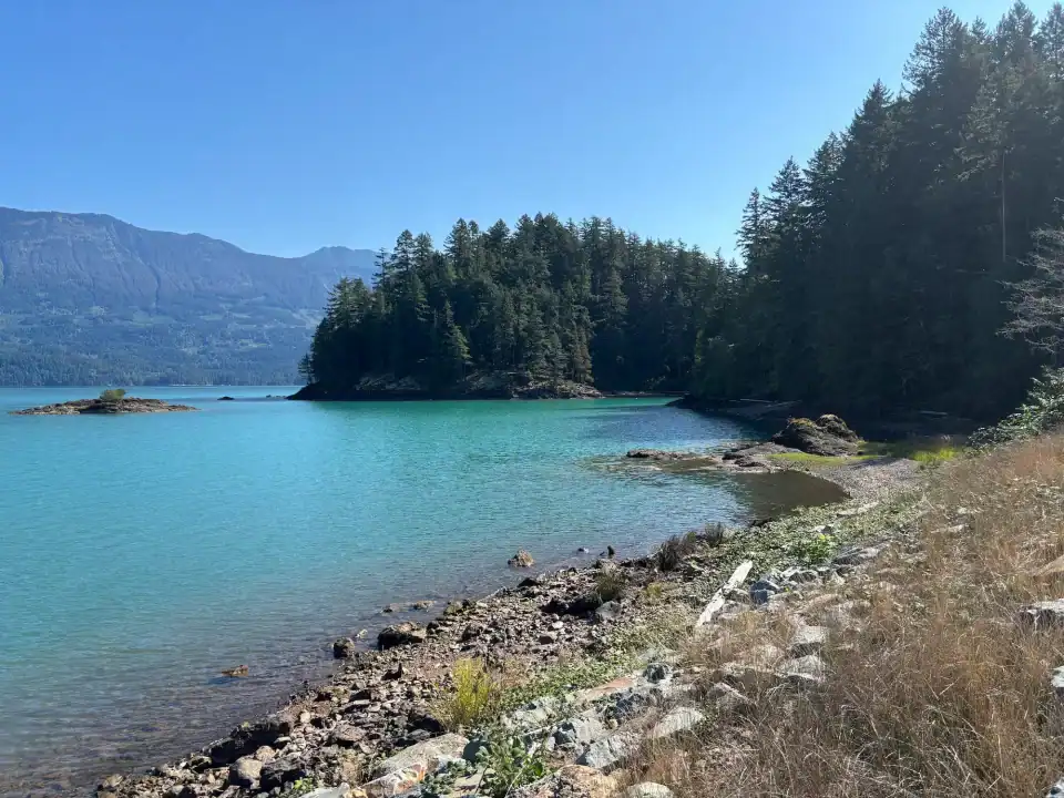 - At the Weaver Creek Spawning Channel the road turns to a gravel/dirt Forest Service Road. (approximately 9 km from Sasquatch Inn) Continue along the Sts’Ailes Forest Service Road.